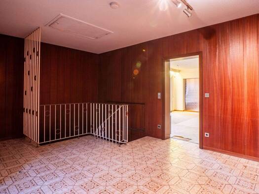 Das Einfamilienhaus wurde 1976 im klassischen 70er-Jahrestil erbaut und erstreckt sich über 194 qm Wohnfläche. Mit einem Garten, der ringsherum um die ganze Immobilie führt, und zwei dazugehörigen Te...