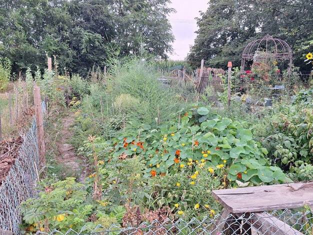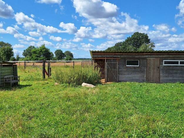 Der Resthof hat eine Grundstücksfläche von 13.700m². Hiervon etwa 5.825m² eine umzäunte Weide mit kleinem Stall. Daneben ist eine große Obstwiese (ebenfalls umzäunt) und ein großer Nutzgarten mit gro...