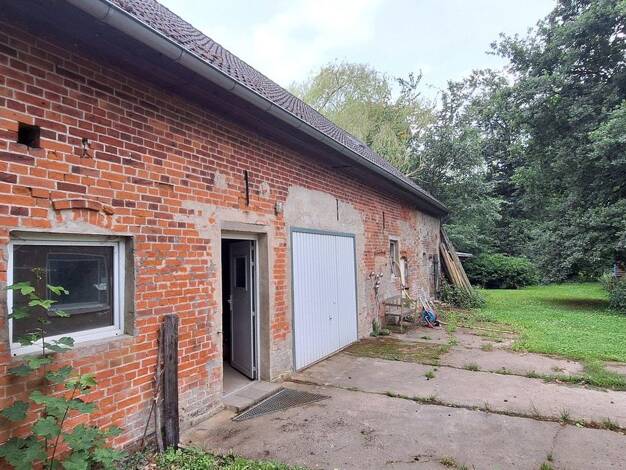 Objektbeschreibung Bauernhaus (Resthof) mit Nebengebäuden in Massiv-Fachwerkbauweise, Doppelgarage mit Werkstatt. Ideal auch für Pferdehaltung geeignet, da Wiesen und Ackerflächen vorhanden sind. Urs...