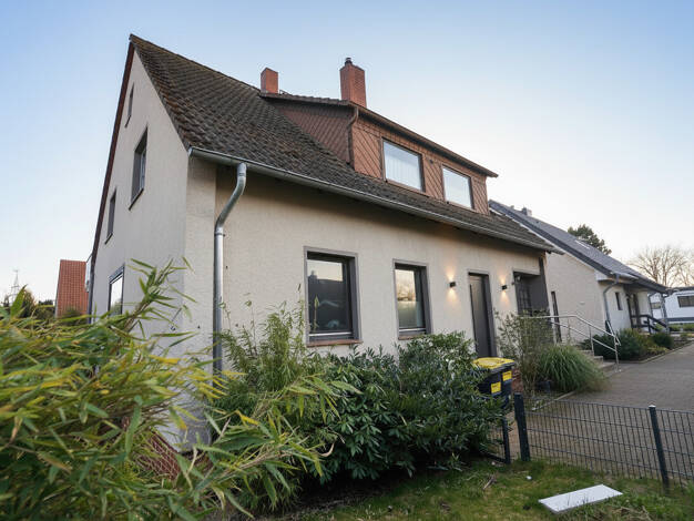 Zum Verkauf steht ein freistehendes Einfamilienhaus in begehrter Feldrandlage am Ende einer Sackgasse in Hillerse. Das 1975 in massiver Bauweise errichtete Haus verfügt über eine vollverklinkerte Fas...