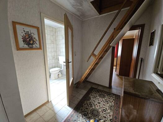 Das sanierungsbedürftige Einfamilienhaus erstreckt sich über mehrere Etagen: Im Erdgeschoss befinden sich eine Küche, ein Esszimmer, ein Abstellraum sowie ein Badezimmer, welches von außen zugänglich...
