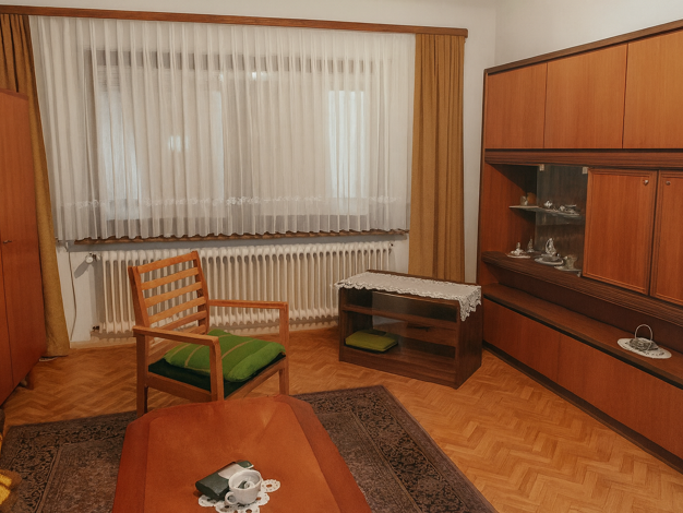 Kurzbeschreibung einseitig angebautes 2-F Objekt Das Haus erstreckt sich über zwei Etagen mit 2 großen Wohnungen und einer kleinen 1 Zimmer, Küche, Bad-Wohnung in Untergeschoss. Erdgeschoss: Eine gem...