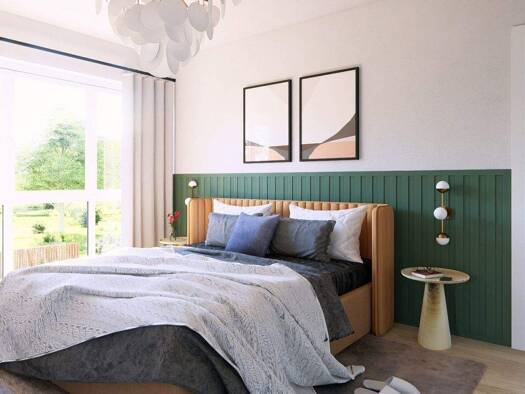 Das Flair steht für Qualität nachhaltig gebaut: Ein Blickfang sind die bodentiefen Fenster, die den Wohnbereich mit viel Licht durchfluten. Hell, gemütlich und weitläufig - genügend Raum zum Entfalte...