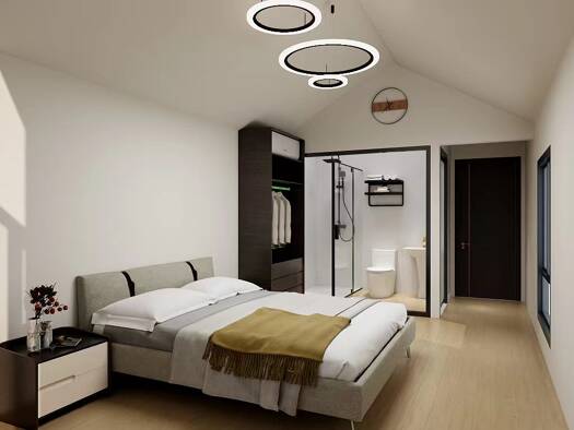 Das Modulhaus zeichnet sich durch moderne und funktionale Designs aus. Das Musterhaus verbindet effiziente Luftwärmepumpe und Infrarotheizung mit flexiblen Gestaltmöglichkeiten für Grundriss und Fass...