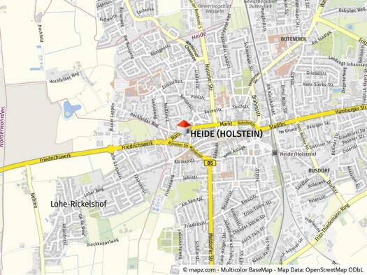 Heide ist eine charmante Kleinstadt im Herzen des Kreises Dithmarschen in Schleswig-Holstein. Bekannt für seine entspannte ländliche Atmosphäre und seinen berühmten Wochenmarkt, bietet Heide mit rund 21.000 Einwohnern eine angenehme Lebensqualität für all jene, die ein Eigenheim in einer ruhigen Umgebung suchen. Die Postleitzahl 25746 schließt diese vielfältige Gemeinde ein, die sowohl für Familien als auch für Berufspendler attraktiv ist.