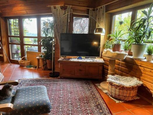 Willkommen in Ihrem neuen Zuhause - einem charmanten Blockhaus, das durch seine außergewöhnliche Bauweise und Lage ein echtes Unikat in der Region darstellt. Das liebevoll gepflegte Einfamilienhaus b...
