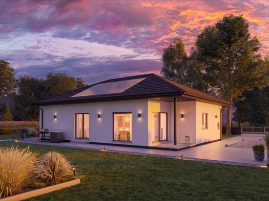 Einfacher und formschöner Bungalow. Individuell geplant und stufenlos glücklich! Leben, Arbeiten, Hauswirtschaften und Schlafen - hier spielt sich alles auf einer Wohnebene ab. Das Angebot beinhaltet...