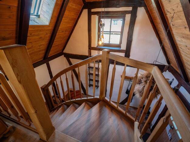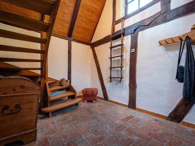 360°-Rundgang: https://www.ohne-makler.net/panorama/323761/ Unser Haus wurde laut Aussage der Vorbesitzer weit vor 1900 gebaut. Offenes Fachwerk mit (auch) handbehauenen Stämmen und Schilfdecken in e...
