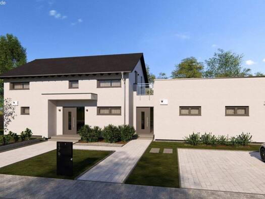 Doppelhaus mit zwei Wohneinheiten, verteilt auf zwei Etagen ohne Keller, mit einer Wohnfläche von insgesamt 272,81 m² und einer angrenzenden Garage. Baujahr 2020. Die Raumaufteilung umfasst im Erdges...