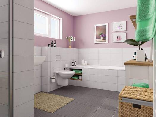 Die kubische Form ist der Klassiker im Stadthausdesign und prägt auch das Aussehen unseres Stadthaus Flair 124. Im Inneren setzt sich der urbane Stil fort: der großzügige Wohn- und Essbereich erstrec...