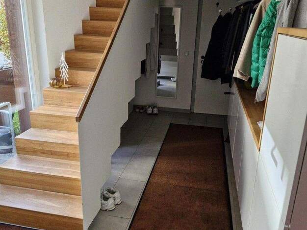 Die kubische Form ist der Klassiker im Stadthausdesign und prägt auch das Aussehen unseres Stadthaus Flair 124. Im Inneren setzt sich der urbane Stil fort: der großzügige Wohn- und Essbereich erstrec...
