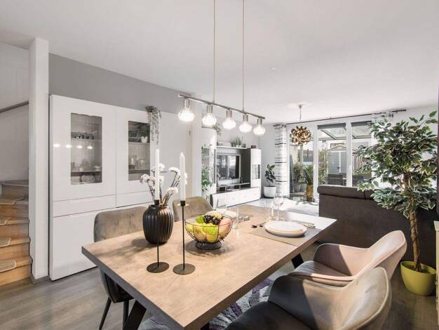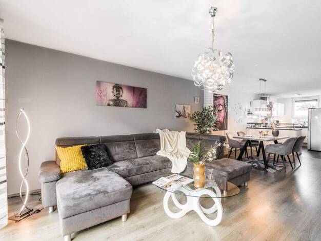Das erst 2022 erbaute Reihenmittelhaus wurde mit viel Liebe und Geld eingerichtet und optimiert. Schön ausgestattet zieht sich das moderne Design durch das ganze Haus. Hier lacht das Schwabenherz: Ei...