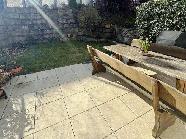 Dieses Reihenmittelhaus aus dem Jahr 1977 bietet solide Wohnqualität und eine funktionale Raumaufteilung. Der helle Wohnbereich mit Zugang zur Terrasse schafft ein angenehmes Wohnambiente, während de...