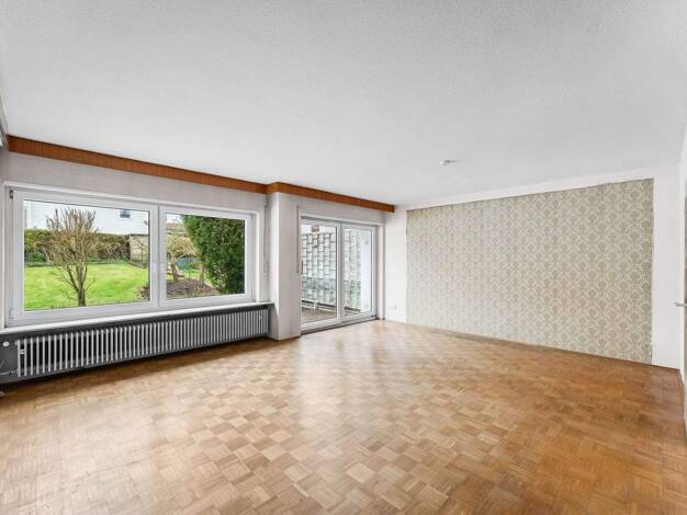 Kurzbeschreibung Wohnzimmer mit Kaminanschluss Parkett- und Dielenböden im Wohnbereich Erdgeschoss aufgeteilt in Wohnzimmer, Küche, Ess-/Arbeitszimmer, Flur und Gäste-WC. Im Obergeschoss befinden sic...