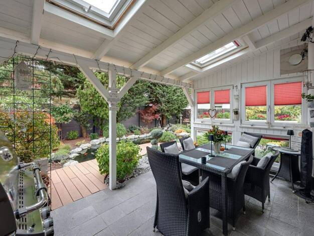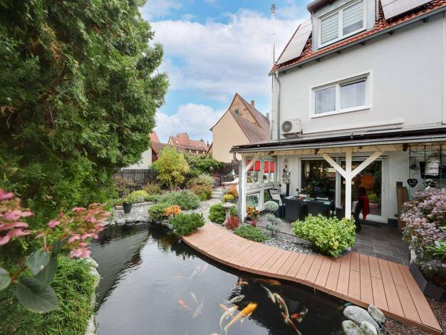 Das sehr wertig sanierte Reihenendhaus mit Einbauküche und tollem Garten liegt auf einer Gesamtfläche von über 650 m². Im vorderen Bereich zum Haus ist ein Grundstücksteil ab gepachtet. (ca. 235 m²) ...