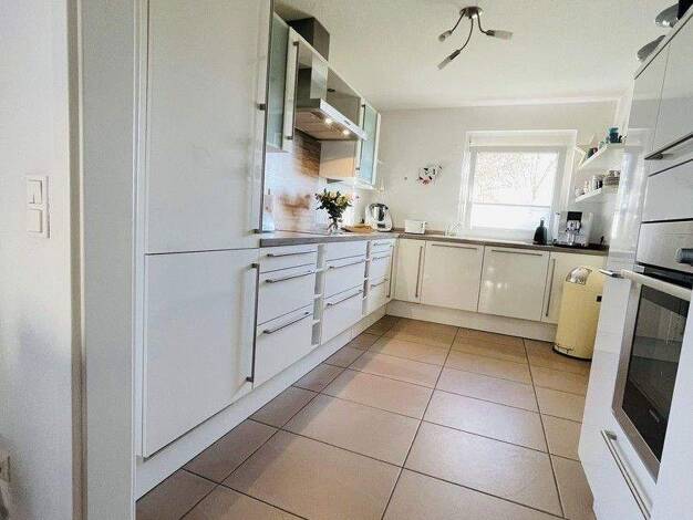 Von der Haustür treten Sie ein in eine schöne Diele und dem Treppenhaus zumOG welches komplett gefliest ist. Im Erdgeschoss befindet sich eine sehr schöne helle und hochwertige Einbauküche die im Kau...