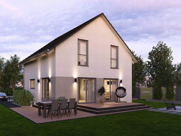 Zeitlose Eleganz außen, Weite und ein besonderes Raumgefühl innen - das ist unser Design 10. Unter dem Satteldach warten hier rund 135 m² auf zwei Ebenen darauf, bezogen und mit Leben gefüllt zu werd...