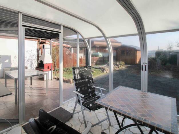 Im fast 25 m² Wohnzimmer können Sie den Blick auf die rund 20 m² große, überdachte Terrasse und in den Garten genießen. Hier, auf der Terrasse oder im Garten, dürfen Sie nach Feierabend oder am Woche...