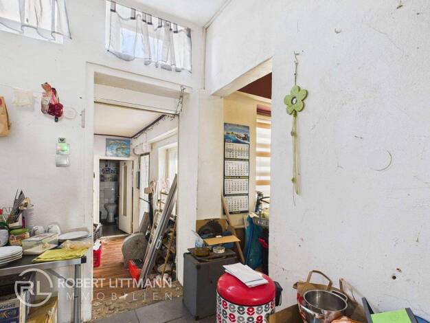 Ansprechendes Gebäude aus dem Jahre 1949. Im Frontbereich gibt es die 6 Stufen bis zum Hochparterre. Seitlich rechts davon gelangt man in den Kellerbereich. Im Hochparterre gibt es zwei Zimmer und ei...