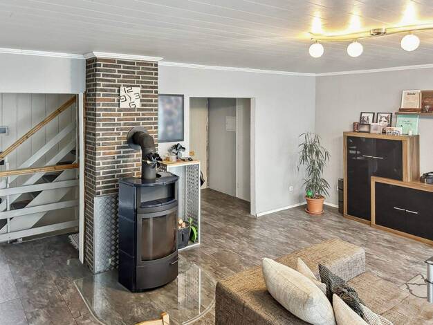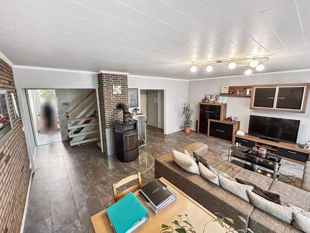 Objektbeschreibung Beim Betreten der Immobilie gelangt man über den Flur direkt in das großzügige Wohnzimmer mit Blick in den Garten. Linksseitig befindet sich das Esszimmer mit einer angrenzenden of...