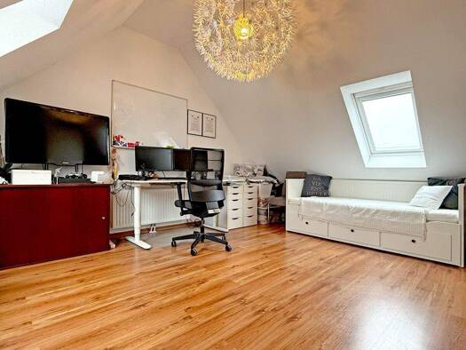 Durch die interessante Raumaufteilung auf 3 Wohnebenen ist dieses Haus ideal für Familien geeignet. Im Erdgeschoß befinden sich das Wohnzimmer, die Küche, der Flur, das Gäste-WC sowie die Küche. Im k...