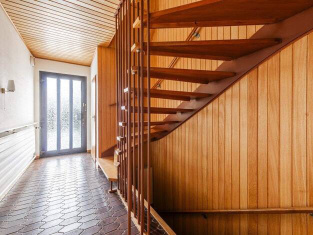 Ein zweigeschossiges Einfamilien-Reihenmittelhaus mit Garage, Baujahr 1963, und einer Wohnfläche von 89 Quadratmetern. Das Haus verfügt über ein Untergeschoss und folgende Raumaufteilung: Im Erdgesch...