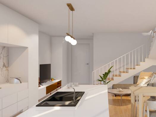 Diese Reihenmittelaus-Perle ist modern und offen gestaltet. Im Eingangsbereich befindet sich das Gäste-WC und ist durch eine Flurtür zum Wohnzimmer mit offenem Küchen- & Essbereich nochmals optis...