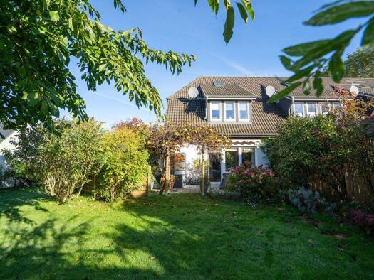 Das Reihenmittelhaus verfügt über 5 Zimmer + Dachzimmer mit Schräge. Das Haus hat in südlicher Ausrichtung eine überdachte Terrasse, eine Dachterrasse sowie einen Balkon mit Blick ins Grüne im ruhige...