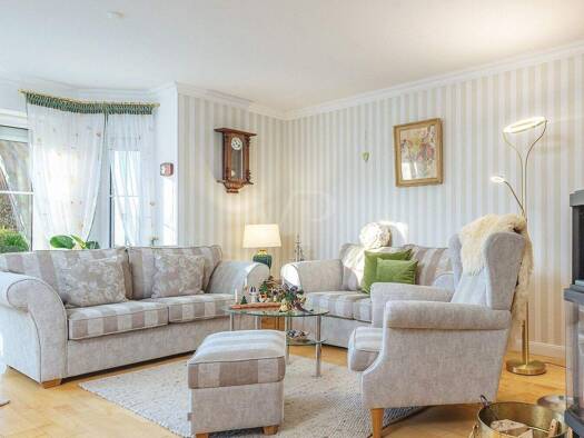Entdecken Sie das komfortable Wohnen in idyllischer Umgebung. Willkommen in Ihrem neuen Zuhause. Der großzügige Wohnbereich wird durch bodentiefe Fenster erleuchtet und bietet Platz für gemütliche Ab...