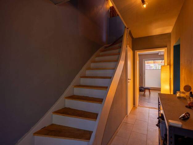 Vom Eingangsbereich gelangen Sie in den Flur, zur rechten Hand befindet sich die Küche mit EBK, zur linken Hand befindet sich der Treppenaufgang zum Obergeschoß, weiter geradeaus betreten Sie das gro...