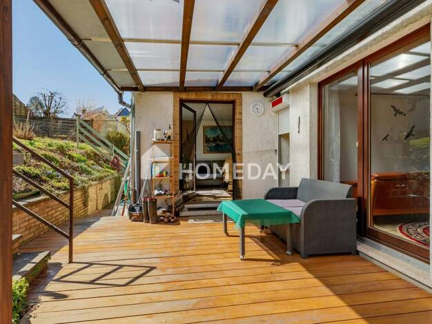 Das komplett sanierte Reihenmittelhaus mit gehobener Ausstattung, neu angelegtem kleinen Garten, Terrassenüberdachung aus Glas, separatem Abstellraum und Garage befindet sich in zentraler Innenstadtl...