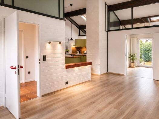 Dieses charmante Reihenmittelhaus wurde im Jahr 1980 von einem Architekten entworfen und erbaut und überzeugt durch seinen zeitlosen, offenen Grundriss. Sie betreten das Haus durch die moderne, anthr...
