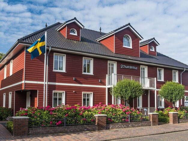 Das Reihenhaus in rot gehaltener Holzoptik ist im Jahre 2015 neu erstellt worden. Jede Wohnung wurde individuell geplant und urlaubsgerecht eingerichtet und bietet ausreichend Raum für Großfamilien o...
