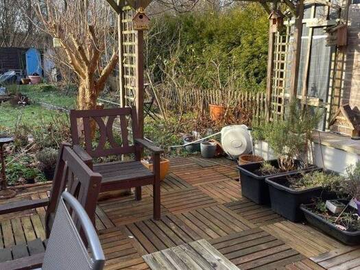 Erbbaurecht - Einfamilien-Reihenendhaus aus dem Jahr 1967 mit 152 m² Wohnfläche auf 1 bis 2 Etagen, inklusive Keller, Terrassen, Garten, und einer 15 m² großen Garage. Zum Haus gehört auch ein Teil e...