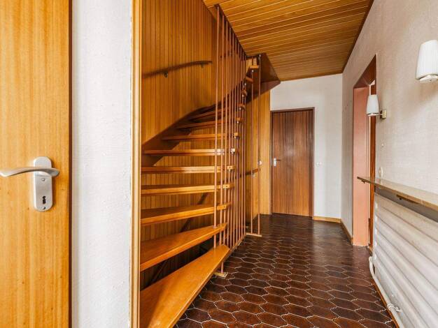 Beim Betreten des Hauses gelangt man zunächst in einen großzügigen Eingangsbereich, der ausreichend Platz für eine Garderobe, Einbauten oder praktische Stauraumlösungen bietet. Von hier aus führt der...