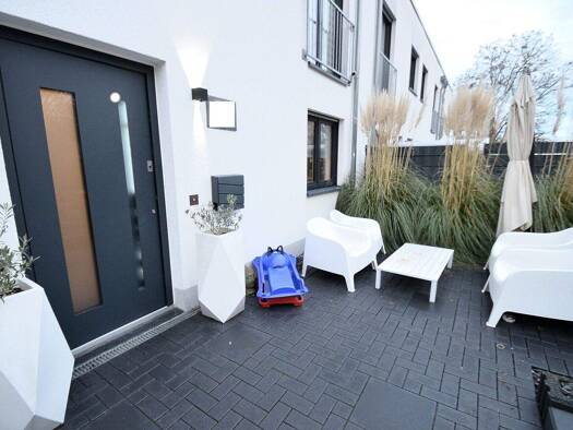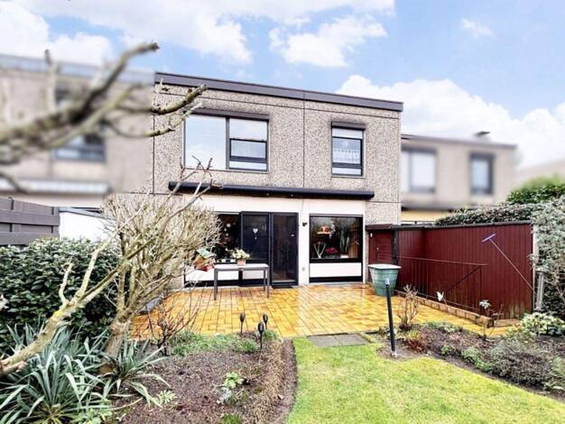 Ein zweigeschossiges Einfamilien-Reihenhaus mit Keller und ausgebautem Dachgeschoss, das 115 Quadratmeter Wohnfläche bietet. Es verfügt über eine überdachte Terrasse, einen Garten und eine Garage. Da...