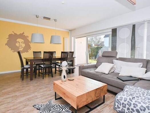 Das schön geschnittene Reihenendhaus in Wohneigentümergemeinschaft verfügt über einen kleinen Garten mit Südausrichtung und einem Gartenausgang zur Straße. Eine große Fensterfront im Wohnbereich führ...