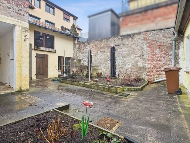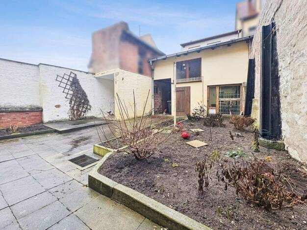 Einfamilien-Reihenmittelhaus mit einem Stockwerk, ohne Keller, ausgebautem Dachgeschoss und einer Wohnfläche von 160 m². Das Haus verfügt über einen Anbau auf der Hofseite sowie zwei Nebengebäuden un...