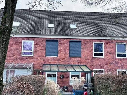 Reihenhaus mit Terrasse und offenem PKW-Stellplatz mit freiem Blick ins Moor Nur wenige Kilometer bis zur Fördestadt Flensburg! Erdgeschoss: Großzügiges Wohnzimmer mit Ausgang zur Terrasse, Küche mit...