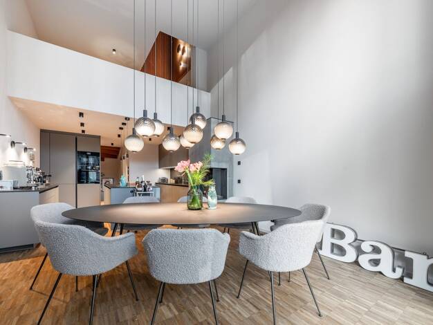 Beim Betreten dieser hochwertigen und luxuriösen Immobilie empfängt Sie das Entrée mit beeindruckender Deckenhöhe und Glasfront sowie einer Atmosphäre zeitloser Eleganz. Hier wird durch die großzügig...