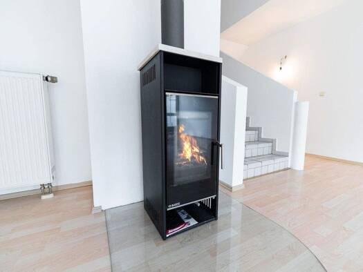 Stellen Sie sich vor, wie Sie durch die sonnendurchflutete Wohnküche dieses charmanten Reihenmittelhauses schreiten: Der zentrale Blick fällt auf den hochwertigen Kamin aus dem Jahr 2022, dessen Flam...