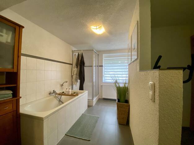 Das Wohnhaus besteht aus zwei separaten Wohnungen. Die kleine 2-Raum-Wohnung erreiche ich direkt vom Parkplatz aus und ist ca. 47m² groß, sie ist vermietet. Die große 3-Raum-Wohnung mit der wundersch...