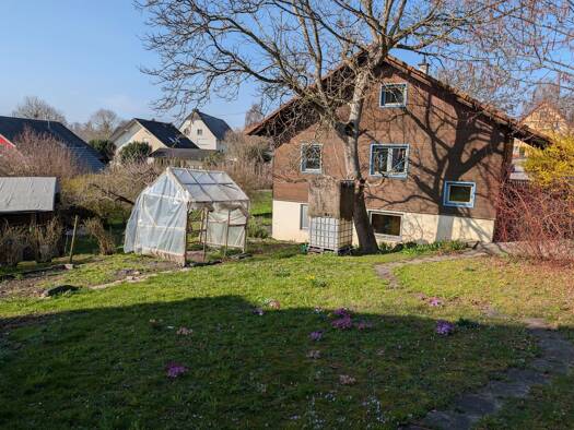 Das zum Verkauf angebotene 1-2-Familiemhaus liegt am Ende einer Sackgasse auf einem 1.572 m² großen Grundstück am Ortsrand von Mühlhofen. Es wurde 1971 als Einfamilienhaus mit Büroräumlichkeiten im E...