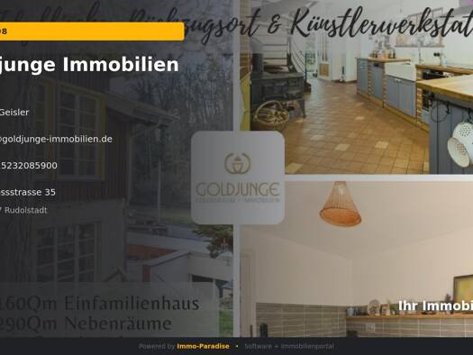 Kurzbeschreibung Idyllisches Anwesen auf 2 ha mit eigenem Wald, Teich, charmantem Künstler - Werkstattatelier Objekt Willkommen in Ihrem zukünftigen Traumhaus in Rudolstadt / Cumbach! Dieses charmant...