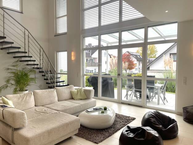 Eine Rarität in erster Reihe über dem Bottigtal - sonnig gelegen mit Blick auf den Hardtwald! Edle Naturmaterialien und moderne Haustechnik gehen in dieser beeindruckenden Villa im Bauhausstil, deren...