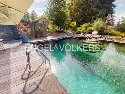 Am Ende einer kleinen Sackgasse, eingebettet am Waldrand, liegt ein Ort, der wie geschaffen ist, um anzukommen und durchzuatmen: eine elegante Villa, die Architektur, Stil und Natur in vollendeter Ha...