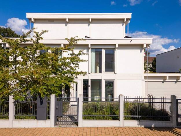 Dieses exklusive Traumhaus verbindet die Architektursprache der klassischen Moderne bzw. des Bauhausstils mit edlen und aktuellen Stil-Highlights. Eine minimalistische Linienführung und die Strenge d...