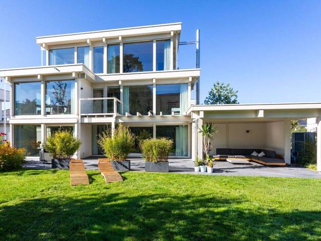 Dieses exklusive Liegenschaft ist mehr als ein Zuhause - es ist ein Statement. Die klare Fachwerkkonstruktion, die filigranen Linien und die großzügigen Glasflächen verleihen dem Gebäude eine unvergl...