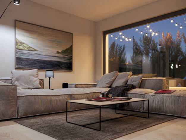 Dieses Einfamilienhaus geht hinsichtlich Gestaltung und Ausstattung keine Kompromisse ein. Von außen zeigt sich das Zweigeschoss als modern interpretiertes Satteldachhaus, das durch attraktive Anbaut...