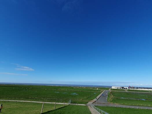 Dieses Haus steht am Rand einer Ferienhaussiedlung, wo die Felder beginnen. Das bedeutet einen freien Blick über die Wiesen Richtung Deich, keine direkten Nachbarn zur Seite, mehr Ruhe als in zentral...